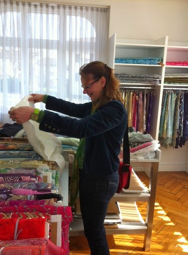 In diesem Laden hatten wir uns die längste Zeit aufgehalten, denn wir konnten ja schließlich nicht alles kaufen und mussten gut abwägen, welche Stoffe mit nach Hause durften.Hier ist bei "Otten" nur der grösste Verkaufsraum zu sehen. Es gab noch zwei weitere Räume. Es gibt Leinen, Jerseys uni oder mit wunderschönen Motiv- und Bordürendrucke, Natürlich fand ich die Seidenstoffe am interessantesten, Es gab neben der Meterware (Preise unter 20 Euro/m) auch jede Menge Coupon-Stücke mit ca 1,5 m für unter 20 Euro.